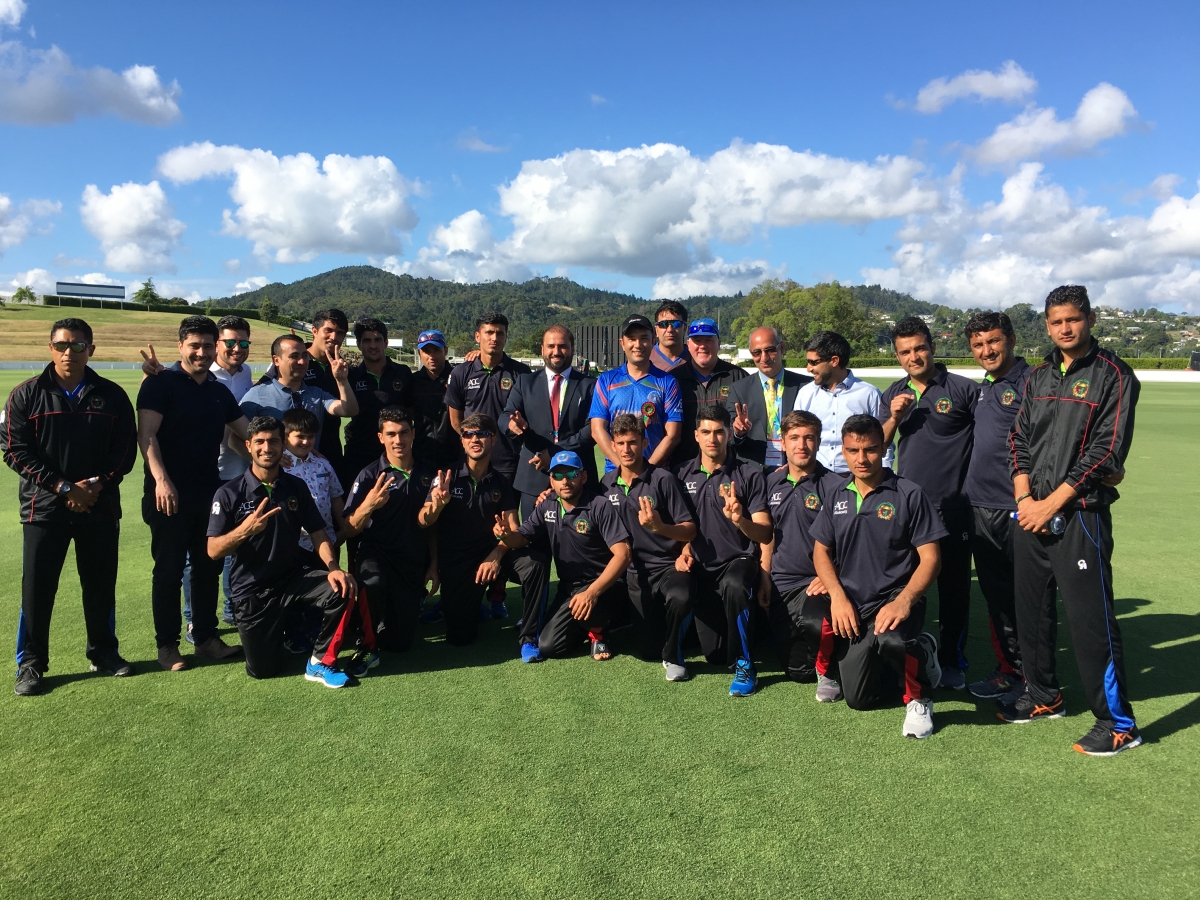 Afghanistan's rising power Under 19 cricket team played for the ICC World Cup in New Zealand in Junary 2018. The Afghan U19 champions displayed a tremendous performance against Pakistan in the opening match of the ICC U19 Cricket World Cup in Whangarei, New Zealand. Afghan Ambassador to Australian and New Zealand, H.E. Wahidullah Waissi, was also attending the first match Afgahnistan vs Pakistan in Whangarie city of North New Zealand on 13 January 2018 in support of the Afghan team.